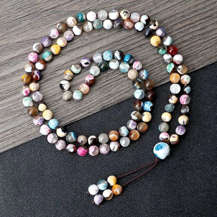 Es perfecta para llevar a diario o como complemento de un traje de noche. Tanto si la lleva sola como con otras joyas, esta pulsera mala de ágata de fuego de colores le aportará una sensación de calma y bienestar.
