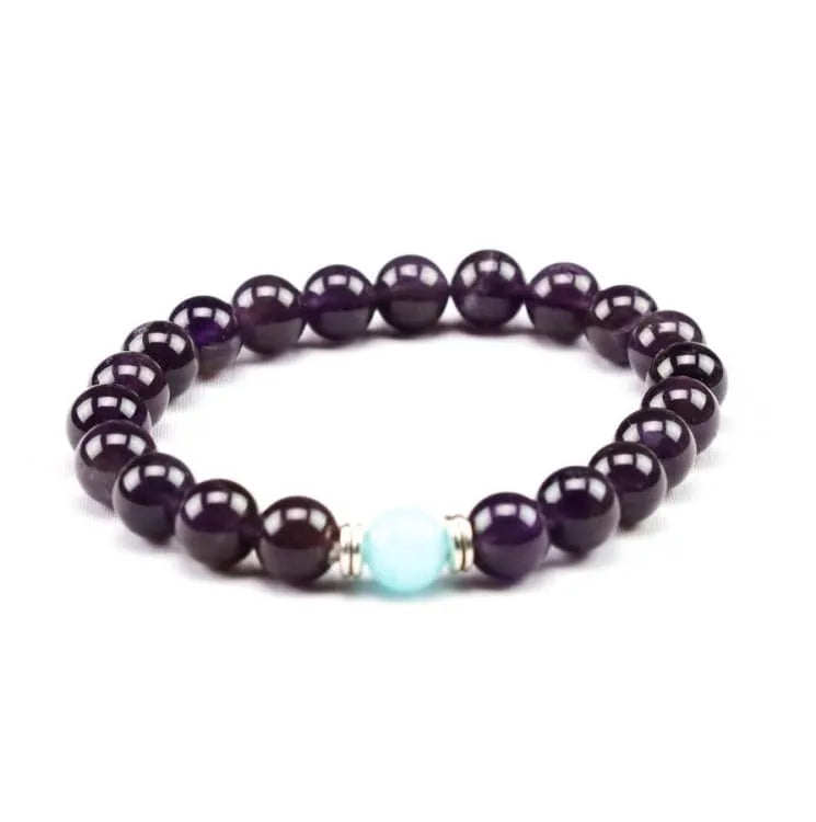 Descubra este brazalete de pureza hecho de perlas de amatista.