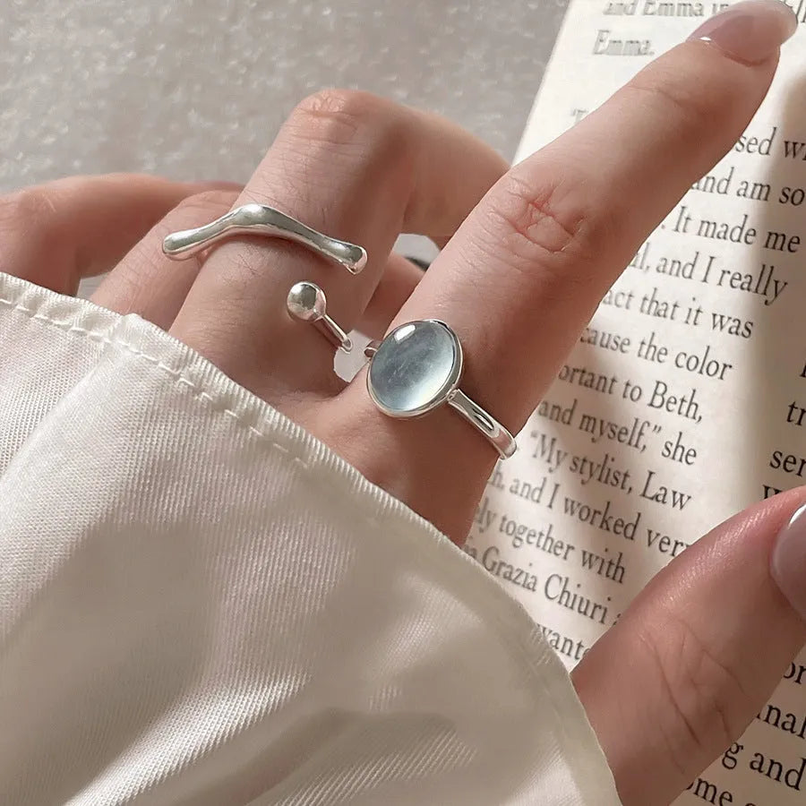 Anillo Ovalado de Plata con Piedra Natural: Elegancia y Energía
