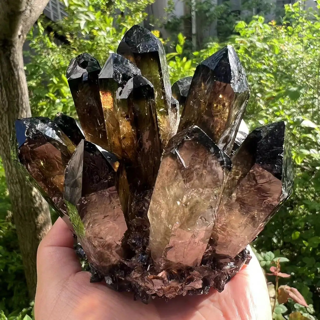 Cada pieza es una formación natural de cuarzo negro ahumado, seleccionada cuidadosamente por su intensidad vibratoria. Su peso varía entre 300 y 1000 g, lo que la hace ideal para colocarse en espacios de meditación, entradas o sobre altares. Ninguna es igual a otra, lo que convierte tu adquisición en un objeto sagrado y exclusivo.