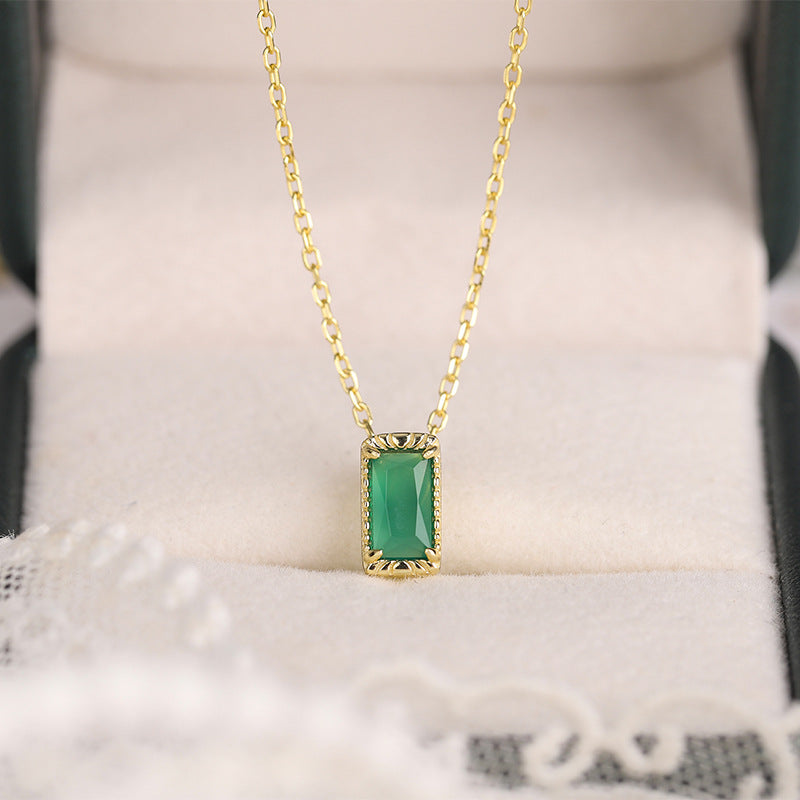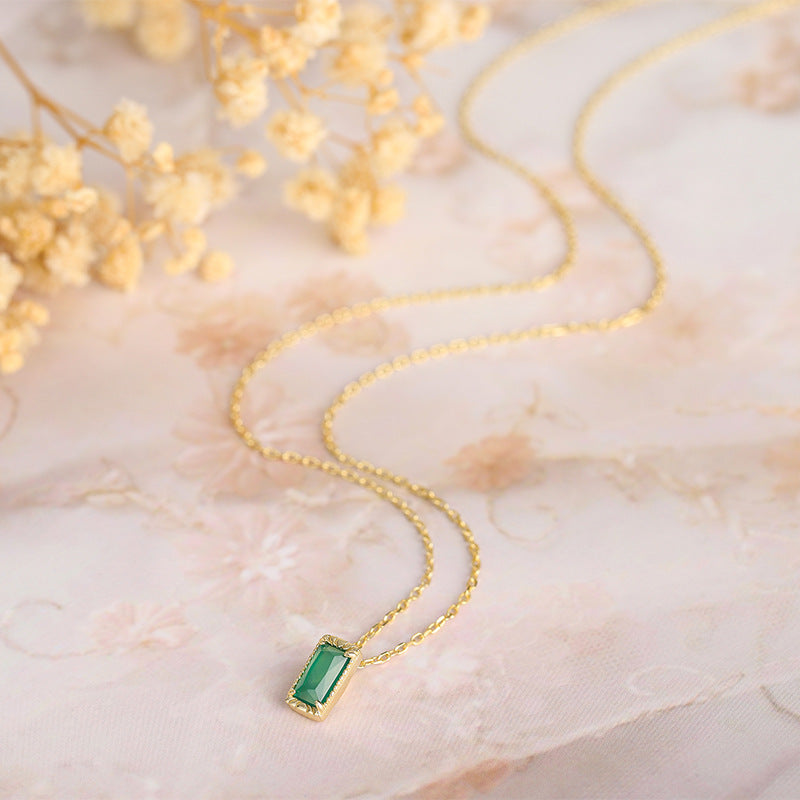 Este collar de plata S925 combina la serenidad del cuarzo retro con la vitalidad de una esmeralda desmontable, ofreciendo una joya que equilibra tus energías y realza tu estilo.
