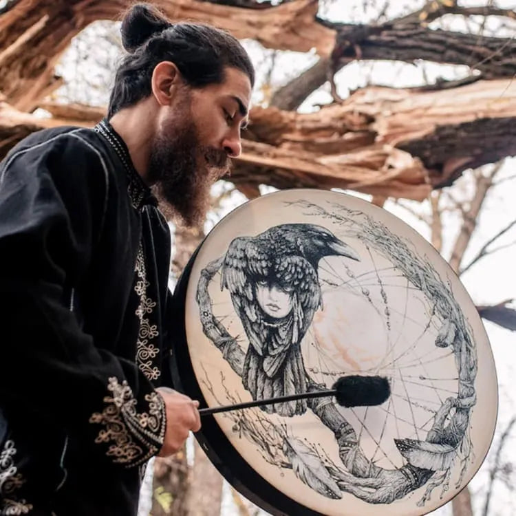El armazón es duro y duradero, lo que le confiere un bello acabado y una excelente estabilidad. El tambor chamánico Raven es ideal para prácticas chamánicas y espirituales.