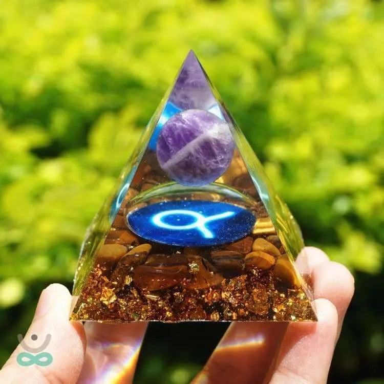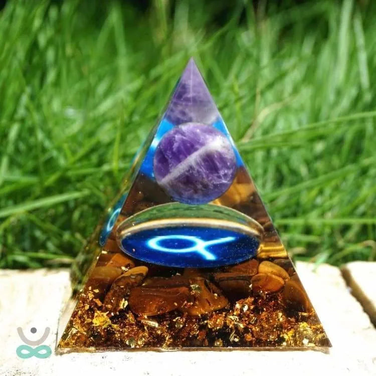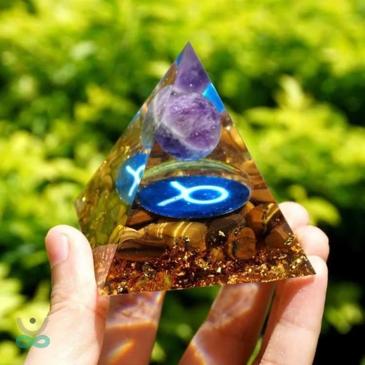 Pirámide del Zodiaco en Orgonita y Ojo de Tigre de 10cm símbolo del Toro