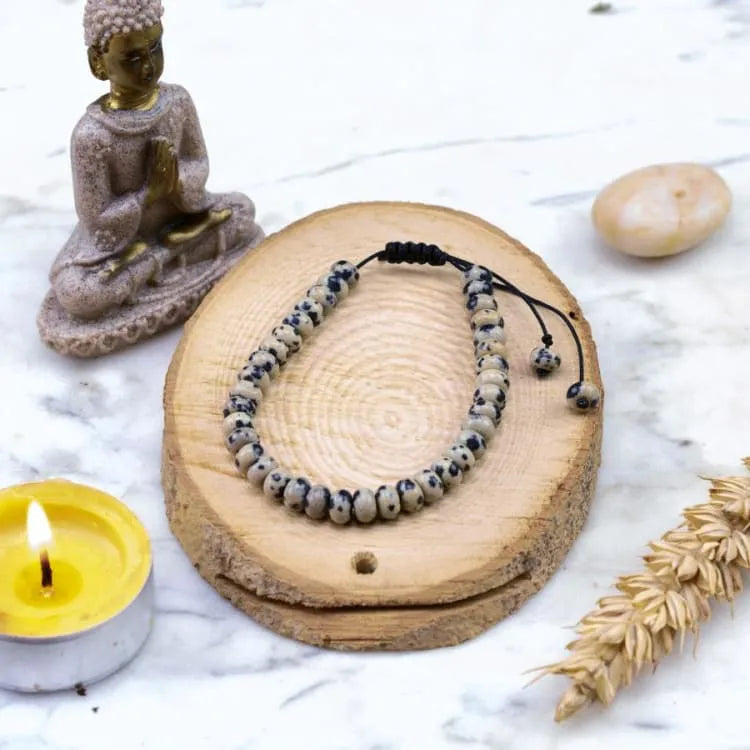 El jaspe dálmata es apodado el "protector supremo", absorbe las energías negativas y protege especialmente durante los viajes. Refinean los cuerpos áuricos, equilibran los chakras, las energías yin y yang en el cuerpo físico.