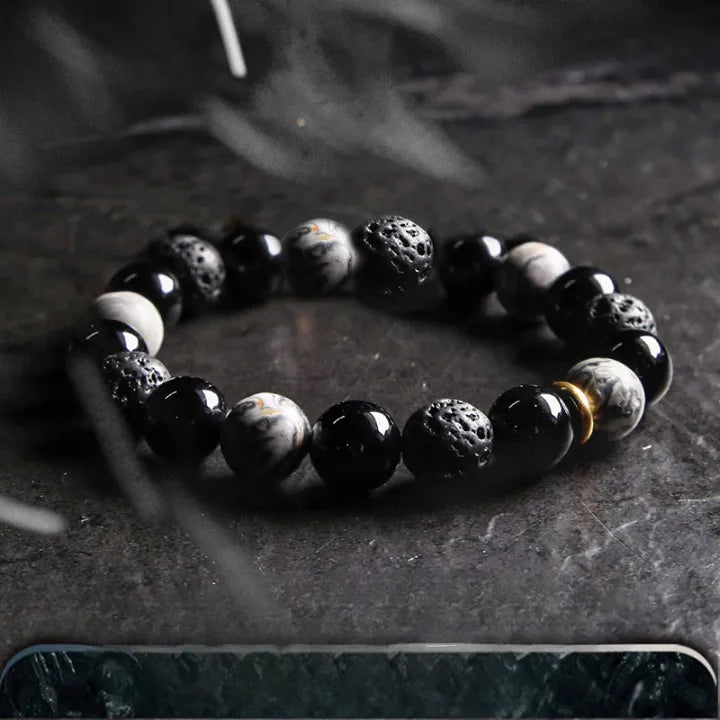 Esta pulsera de piedra de lava natural para hombre es una pieza de joyería elegante y única que completará tu look.