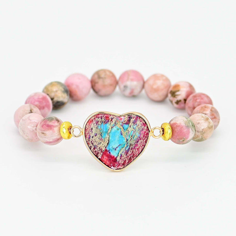 Pulsera elástica de rodonita natural con un encantador colgante en forma de corazón. Una joya que irradia amor, ternura y equilibrio interior.