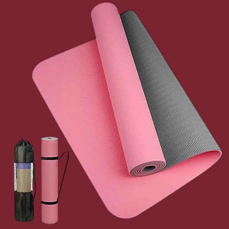 Eleva tu práctica con esta esterilla de yoga antideslizante en color rosa. Con material TPE ecológico, 183 cm x 61 cm, y 6 mm de grosor, proporciona estabilidad, confort y protección para tus articulaciones. ¡Ideal para yoga, pilates y meditación!
