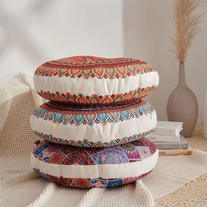 Aporta un toque étnico y acogedor a tu hogar con este cojín redondo de suelo, ideal para meditación, tatami, balcón o alféizar de ventana. Fabricado en algodón y lino, ofrece suavidad, durabilidad y un diseño exclusivo.