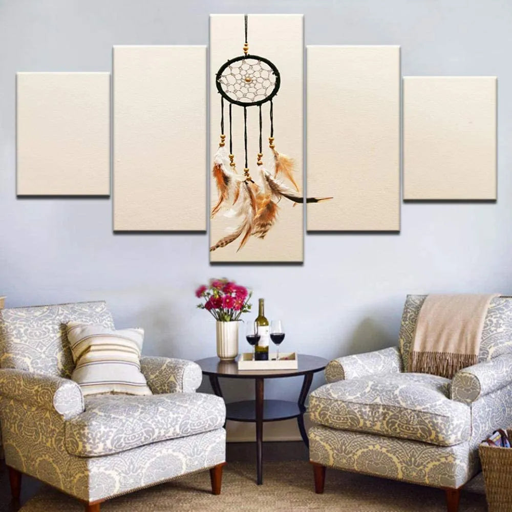 Las plumas y los abalorios se disponen alrededor de la estructura para formar un círculo protector que atrapa los malos sueños e impide que entren en tu dormitorio.