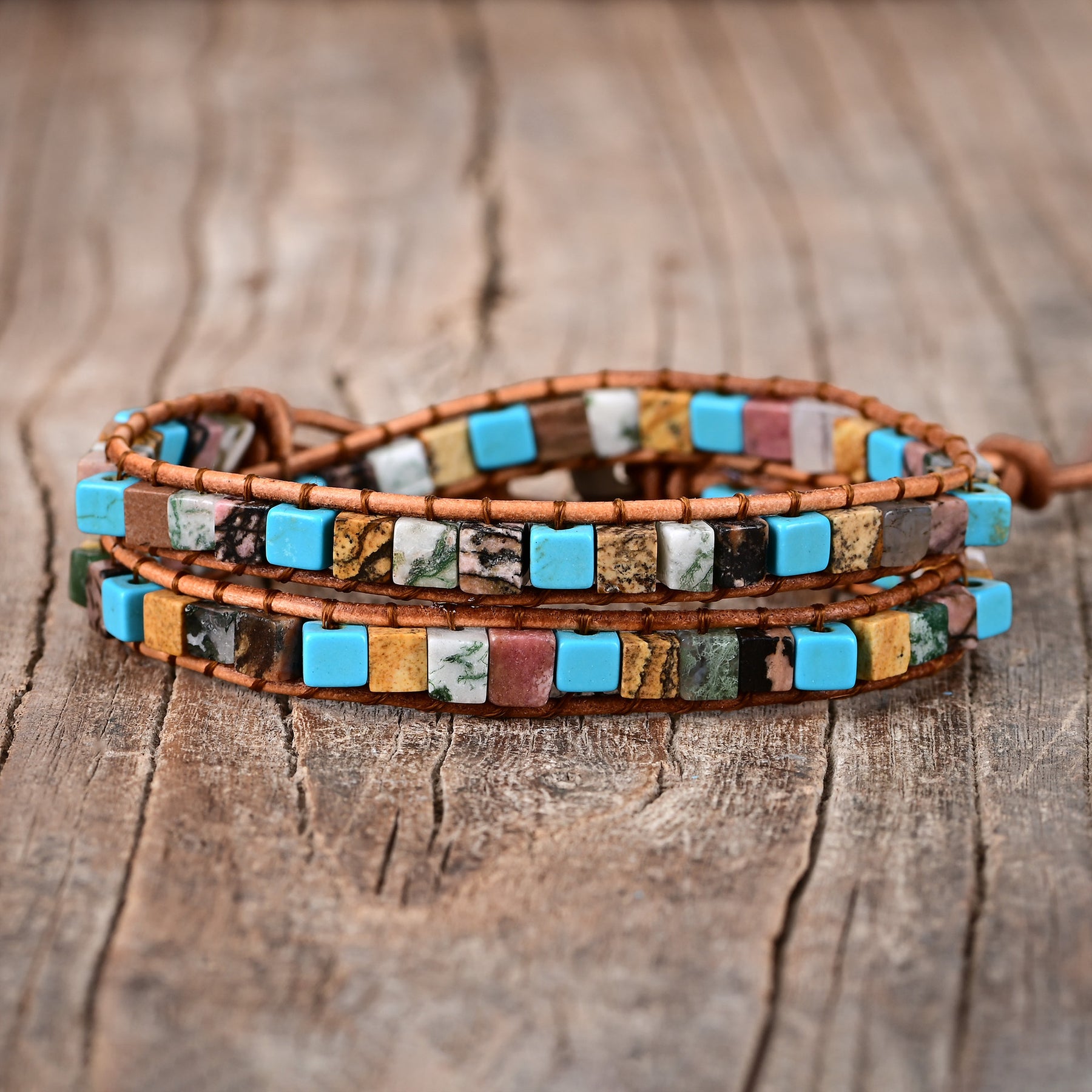 Esta pulsera cuadrada de dos capas con turquesa natural canaliza protección, claridad mental y libertad interior. Ideal para quienes buscan equilibrio con estilo.